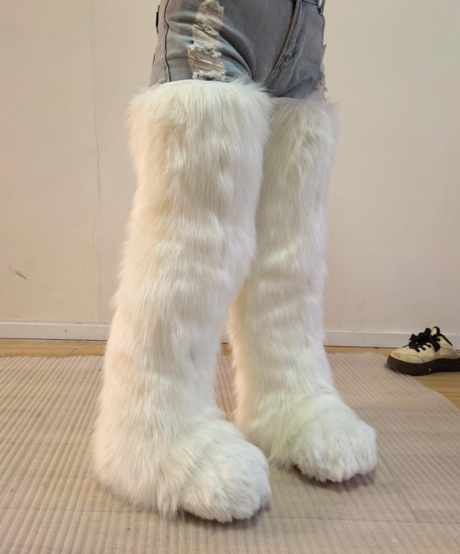 Our newly designed extra-long indoor fursuit feet paws now come with matching shoe covers, allowing you to wear them both indoors and outdoors.